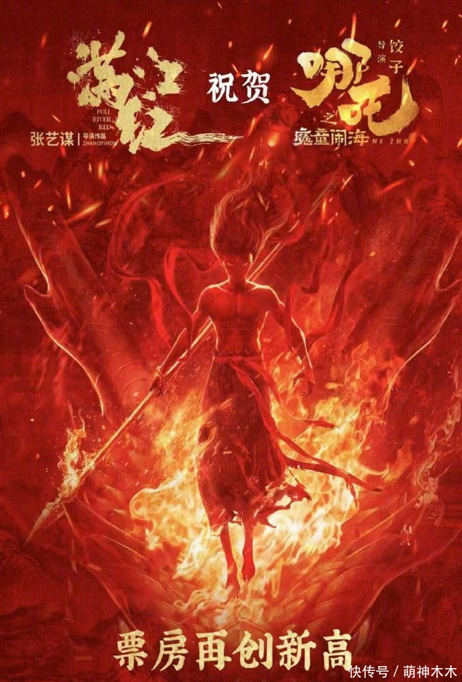 《满江红》选择了与影片基调相似的红色《哪吒》主题海报祝福《哪吒》。
