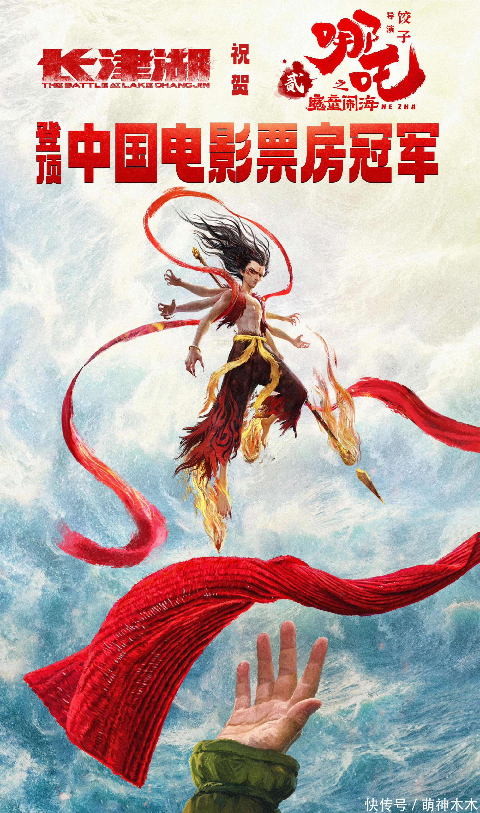 在中国电影圈有一个不成文的传统,当老票房被新作超过时会发文祝贺,当《哪吒2》陆续突破《唐人街探案》、《满江红》、《流浪地球》、《你好李焕英》票房进入影史榜前三过程中,电影官方都制作了新海报祝贺《哪吒2》票房攀新高。令人惊喜的是《哪吒1》与《哪吒2》在中国影史票房TOP5会师,“五年磨一剑”的含金量还在上升。